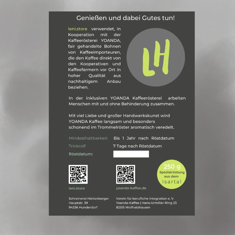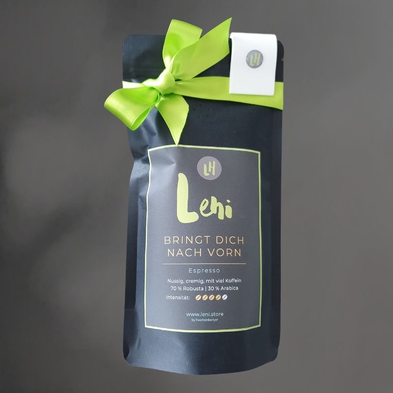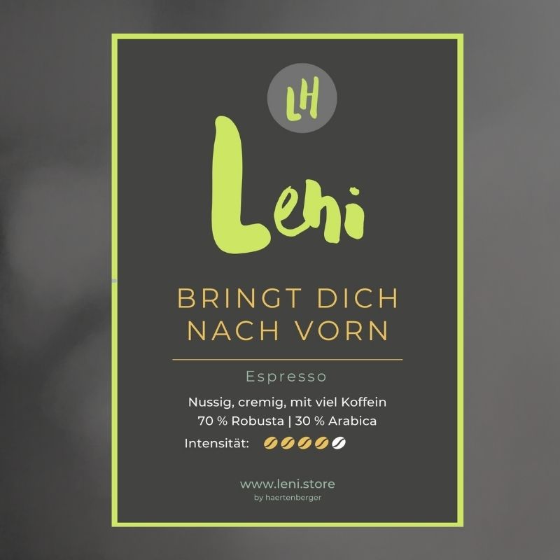 Der Kaffee: 30 % Arabica, 70 % Robusta aus Anbaugebieten in Indien und Brasilien. Feinstes Aroma mit nussigen, cremigen Aromen und dem richtigen Wumms an Koffein machen so richtig wach.