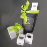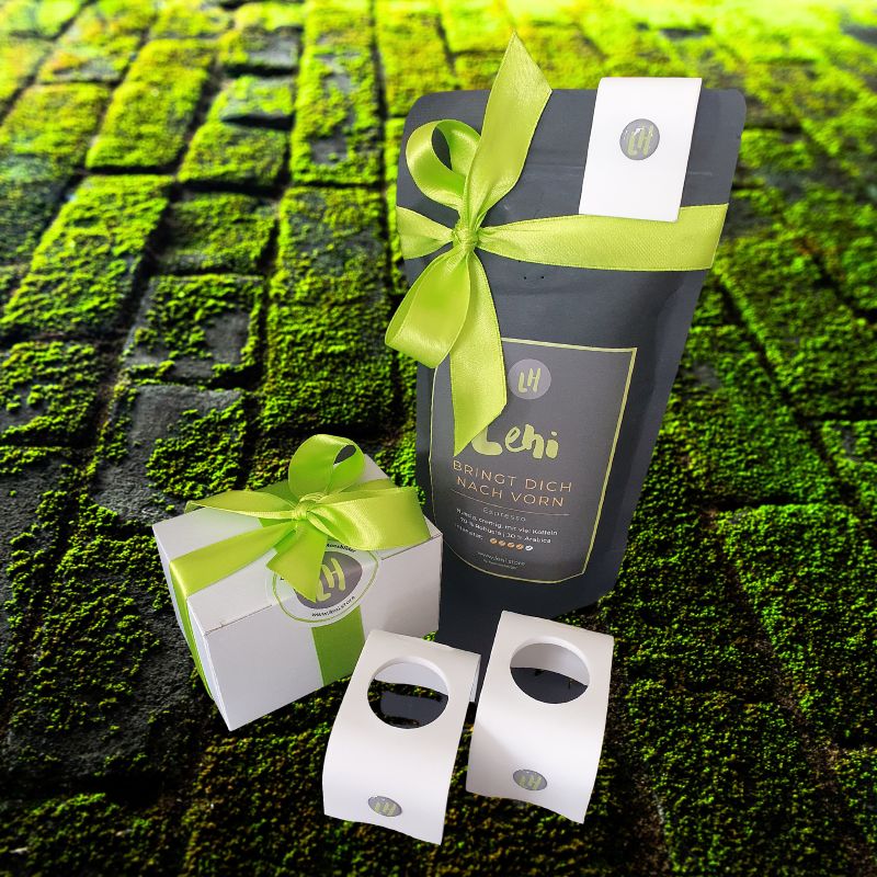 So macht Schenken mit Stil einfach nur Spaß. Das Geschenkset umfasst zwei stylische Eierbecher aus dem Mineralienwerkstoff Corian, 250 Gramm erlesenen Leni-Espresso und einen praktischer Corian-Kaffeeclip.