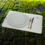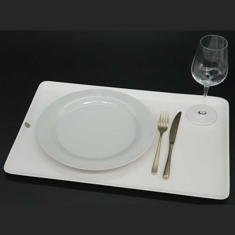 Mit seinen Maßen von 500 Millimeter Breite, einer Länge von 340 Millimeter und einer Höhe von 10 Millimeter bietet das Tablett Platz für einen Teller, Besteck, Glas und ein leckeres Dessert.
