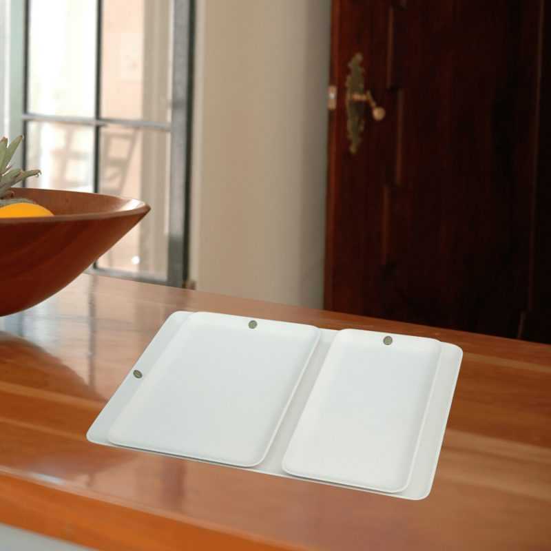 Tabletts in Groß und Klein kann es eigentlich nicht genug geben in der Küche. Manche kommen im Doppelpack oder als Dreier-Set daher. Das Corian®-Set besteht aus drei Tabletts mit folgenden Maßen: